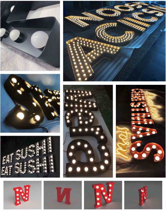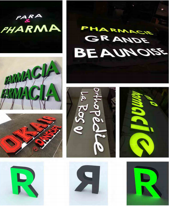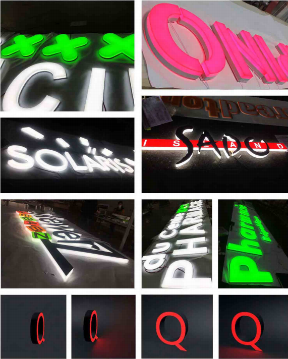The led block letters is made in acrylic material, with DC12V led flexible strip lights. Can custom facelit, backlit, full lit, or face & side lit, etc.
